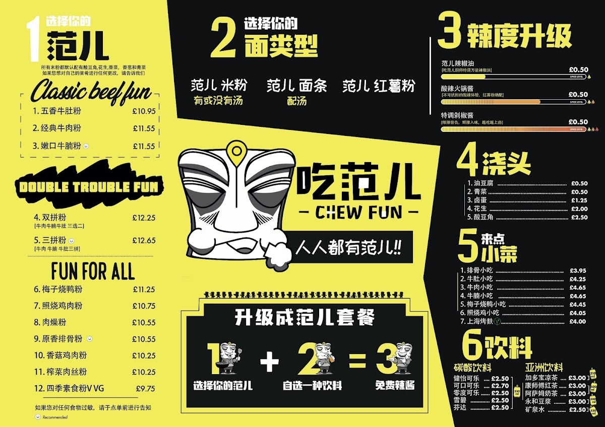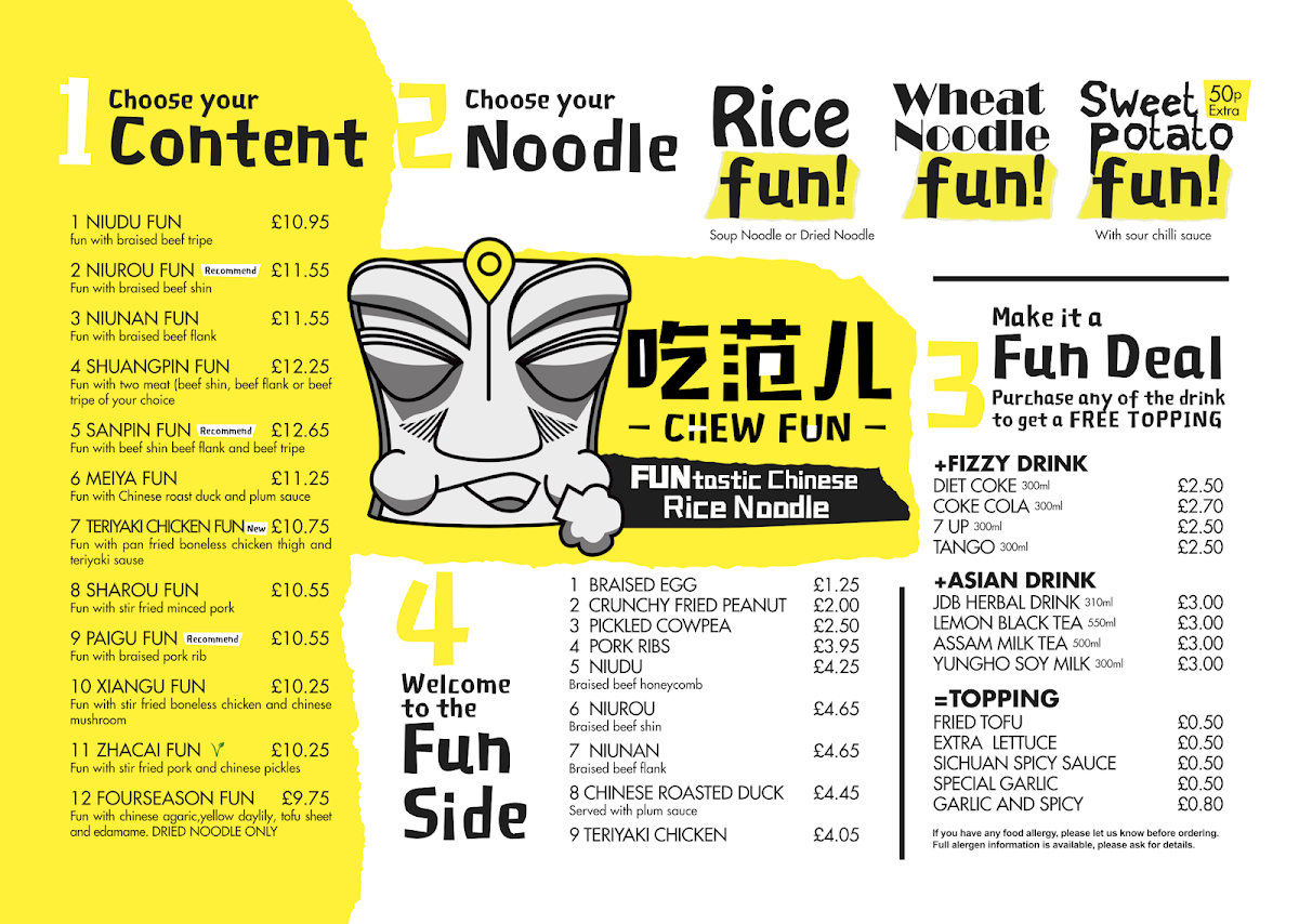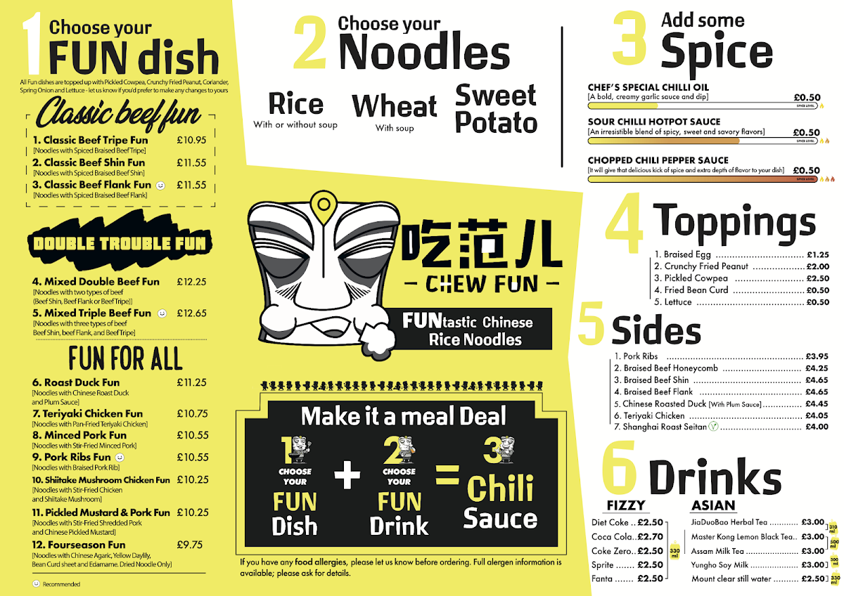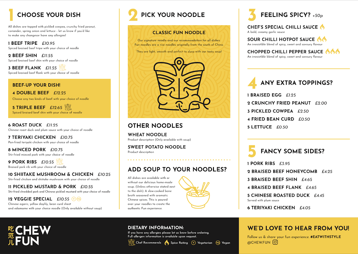 In conclusion, Chew Fun is a standout choice for anyone looking for a delicious, well-rounded dining experience in London. With a diverse menu that caters to a range of tastes and dietary needs, it is a perfect spot for anyone in search of flavor-packed comfort food. Whether you're stopping by for a quick bite or a full meal, Chew Fun guarantees a memorable dining experience.